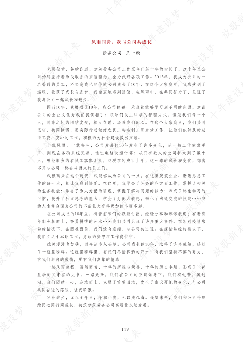 借此機會,感謝廣大職工對企業(yè)做出的巨大貢獻,感謝建設(shè)公司黨政組織和領(lǐng)導(dǎo)對工會工作的大力支持!在這屬于建設(shè)者、奮斗者的火熱時節(jié),讓我們總結(jié)歷史、傳承文化、懷念感恩、發(fā)揚精神、推動企業(yè)邁入下一個十年高質(zhì)量發(fā)展新征程!
