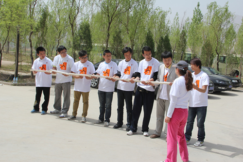 在教練簡(jiǎn)短的介紹之后,便開始了讓大家好奇和期待的訓(xùn)練。為保證活動(dòng)的安全進(jìn)行,此次活動(dòng)的所有項(xiàng)目均在教練的指導(dǎo)下在地面有序開展?;顒?dòng)項(xiàng)目包括高空斷橋、背摔,動(dòng)感顛球,珠行萬(wàn)里,多人跳繩等活動(dòng)。其中,“高空斷橋”時(shí)每位成員都必須戰(zhàn)勝自我,在同伴的鼓舞、指引下釋放潛能;“背摔”告訴大家建立換位思考的意識(shí),站在對(duì)方的角度思考問題,架起相互之間理解的橋梁。這一個(gè)個(gè)充滿趣味的活動(dòng),就像戰(zhàn)場(chǎng)后勤供給的模擬比賽,中間盡管出現(xiàn)了各種或令人捧腹,或令人急躁的麻煩,但結(jié)果卻讓大家很感動(dòng),很滿足??粗蠹夷樕纤烈饬魈实男θ莺秃顾?,大家都真實(shí)地感受到自己身在這樣一個(gè)集體是多么幸福的一件事。
