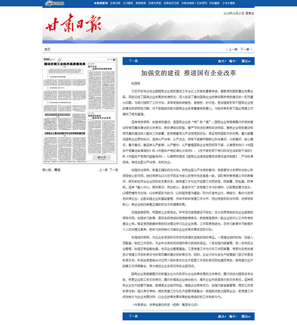 甘肅日報:加強黨的建設(shè) 推進國有企業(yè)改革