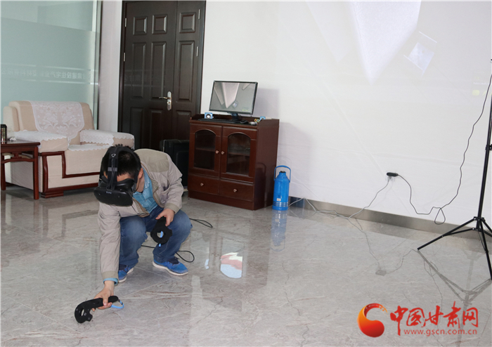 5月18日上午,甘肅建投住宅產(chǎn)業(yè)新型材料有限公司(以下簡稱:甘肅建投新材料),技術研發(fā)部技術員王鑫琦正沉醉于VR虛擬場景之中,他通過手柄控制如玩游戲一般在樓層中安裝內(nèi)部墻。