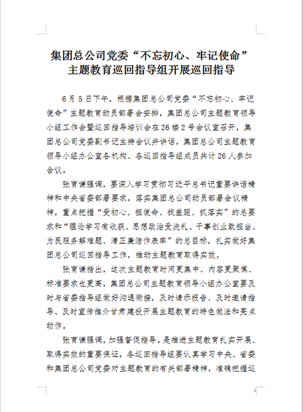 【不忘初心 牢記使命】集團總公司黨委“不忘初心、牢記使命” 主題教育巡回指導(dǎo)組開展巡回指導(dǎo)