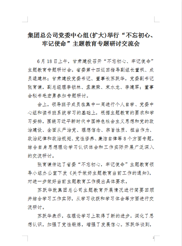 【不忘初心 牢記使命】集團(tuán)總公司黨委中心組(擴(kuò)大)舉行“不忘初心、牢記使命”主題教育專題研討交流會